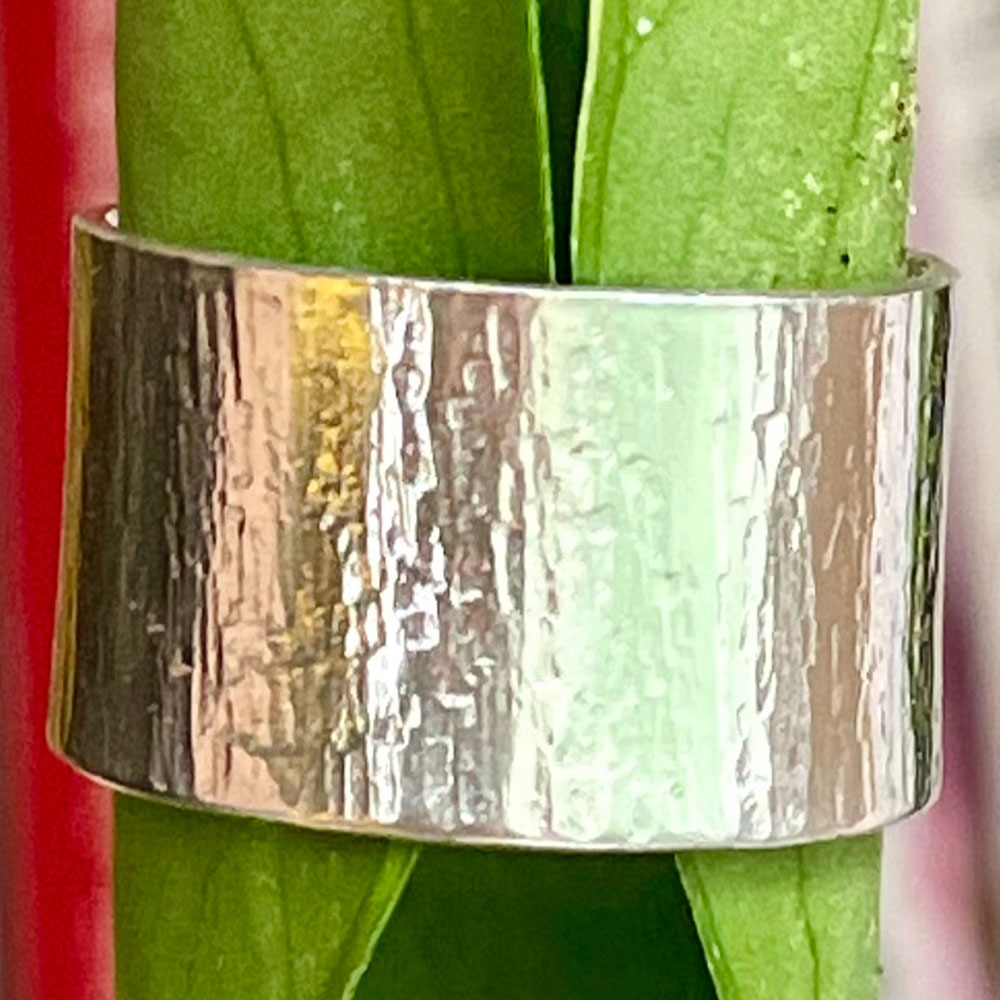 Voici ma nouvelle bague “Pluie d’Étincelles” ! ✨ façonnée à la main 😍 Cette bague au large bandeau en argent est martelée pour créer une texture unique, rappelant les éclats de pluie.